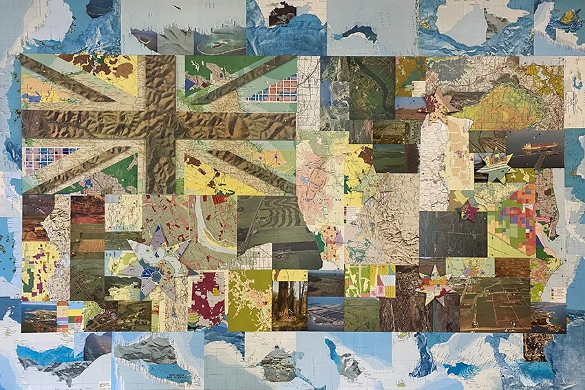 Map collage: hand cut found maps